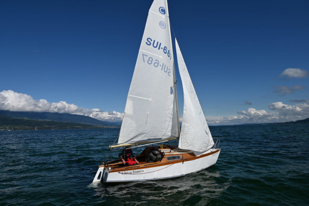 Le charismatique président de la série, Hervé Duchoud, ne tarissait pas d’éloges sur l’accueil du CNTY et surtout sur la série Corsaire. Dessiné par l’architecte naval Jean‐Jacques Herbulot en 1954 pour la célèbre école de voile des Glénans, le Corsaire, petit croiseur monotype de 5,50 m, a toujours ses inconditionnels. Bateau familial, marin et sûr, il a vécu ses heures de gloire en 1998 lors de la Regatissima qui a regroupé, sur une même ligne de départ, 134 équipages au large de Grandson.